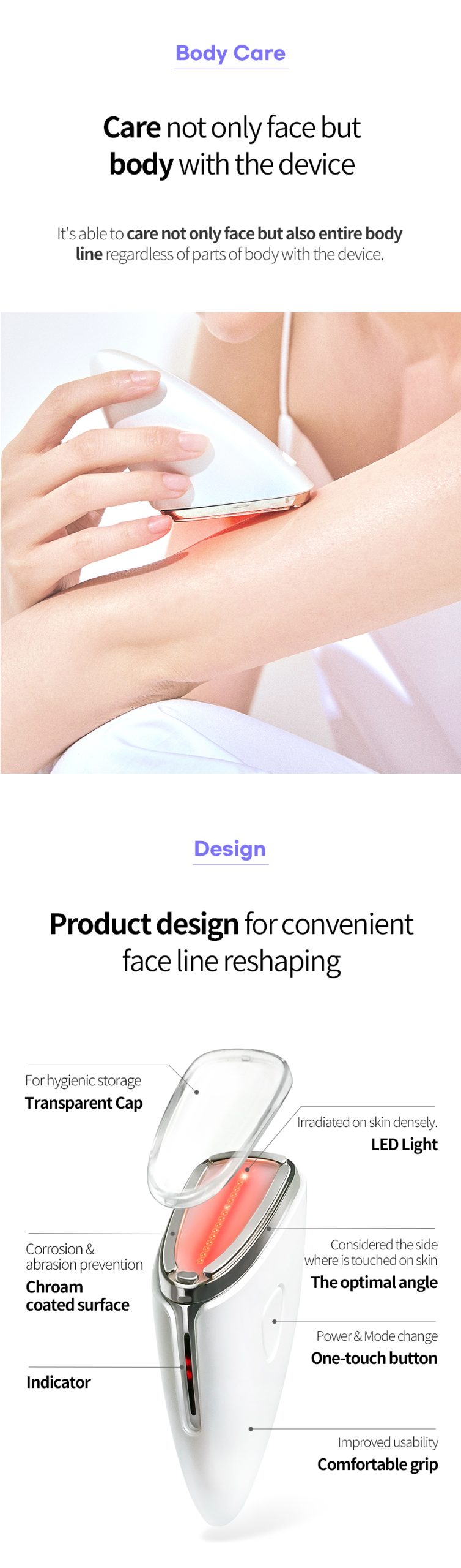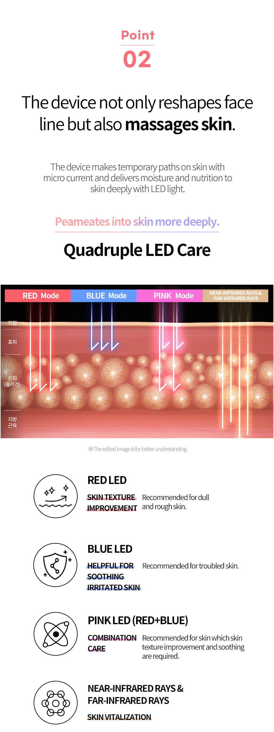 - Lumina Roz ( roșie & albastră)- pentru îmbunătățirea texturii și calității pielii, hidratare , absorbția produselor.