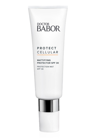 Doctor BABOR Face Protecting Cellular Cream Mattifying Protector SPF 30 pentru când îți dorești un ten elegant și minunat de mat. Acesta conține complexul inovator de ingrediente active Full-Light Protection și Anti-OX Protection, care protejează pielea împotriva îmbătrânirii cutanate cauzată de fctorii externi ai mediului. Aplică loțiunea pe tenul curățat, după ce ai folosit crema obișnuită și bucură-te de o piele fără pată.